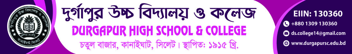 দুর্গাপুর উচ্চ বিদ্যালয় ও কলেজ কানাইঘাট, সিলেট এর শিক্ষার অগ্রগতিতে অনন্য ভূমিকা রাখছে। শিক্ষার পাশাপাশি অত্র প্রতিষ্ঠানের শিক্ষার্থীরা সাহিত্য, সংস্কৃতি, খেলাধুলা, প্রযুক্তি, বিতর্ক, বিজ্ঞান সকল ক্ষেত্রে কৃতিত্ব অর্জন করে বিদ্যালয়ের সুনাম অক্ষুন্ন রেখে চলেছে। অত্র বিদ্যালয় থেকে একজন শিক্ষার্থী মেধাবী, সৎ, কর্মঠ, আধুনিক বিজ্ঞান মনষ্ক, যোগ্য দেশপ্রেমিক ও মানবিক মূল্যবোধ সম্পন্ন আলোকিত মানুষ হয়ে বাংলাদেশকে সমৃদ্ধের পথে এগিয়ে নিয়ে যাবে এ আমার দৃঢ় প্রত্যাশা।